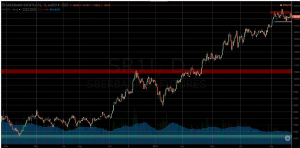 So the daily chart of SBRF at the time of opening of straddle looked: